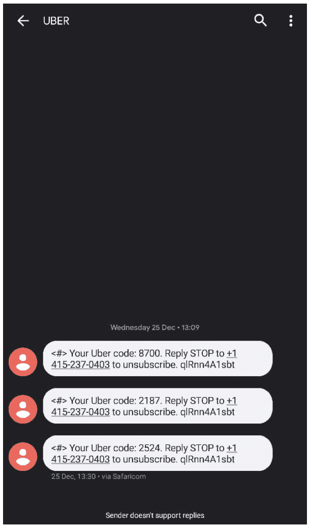 Here is an example of a text opt-out from Uber.